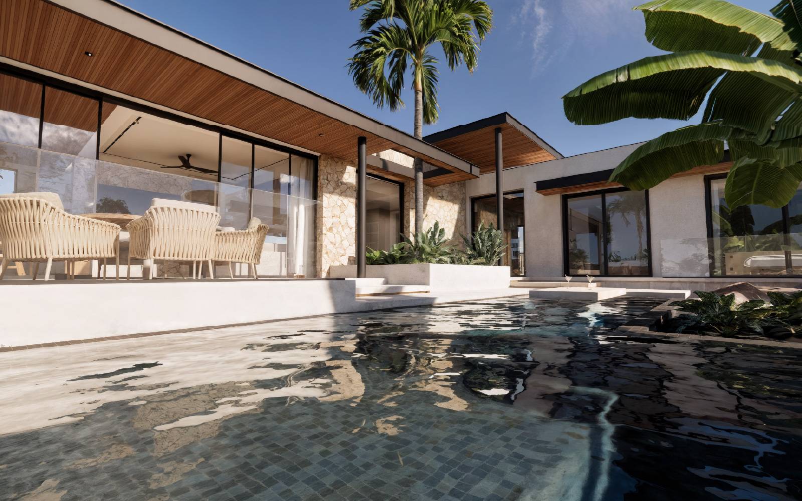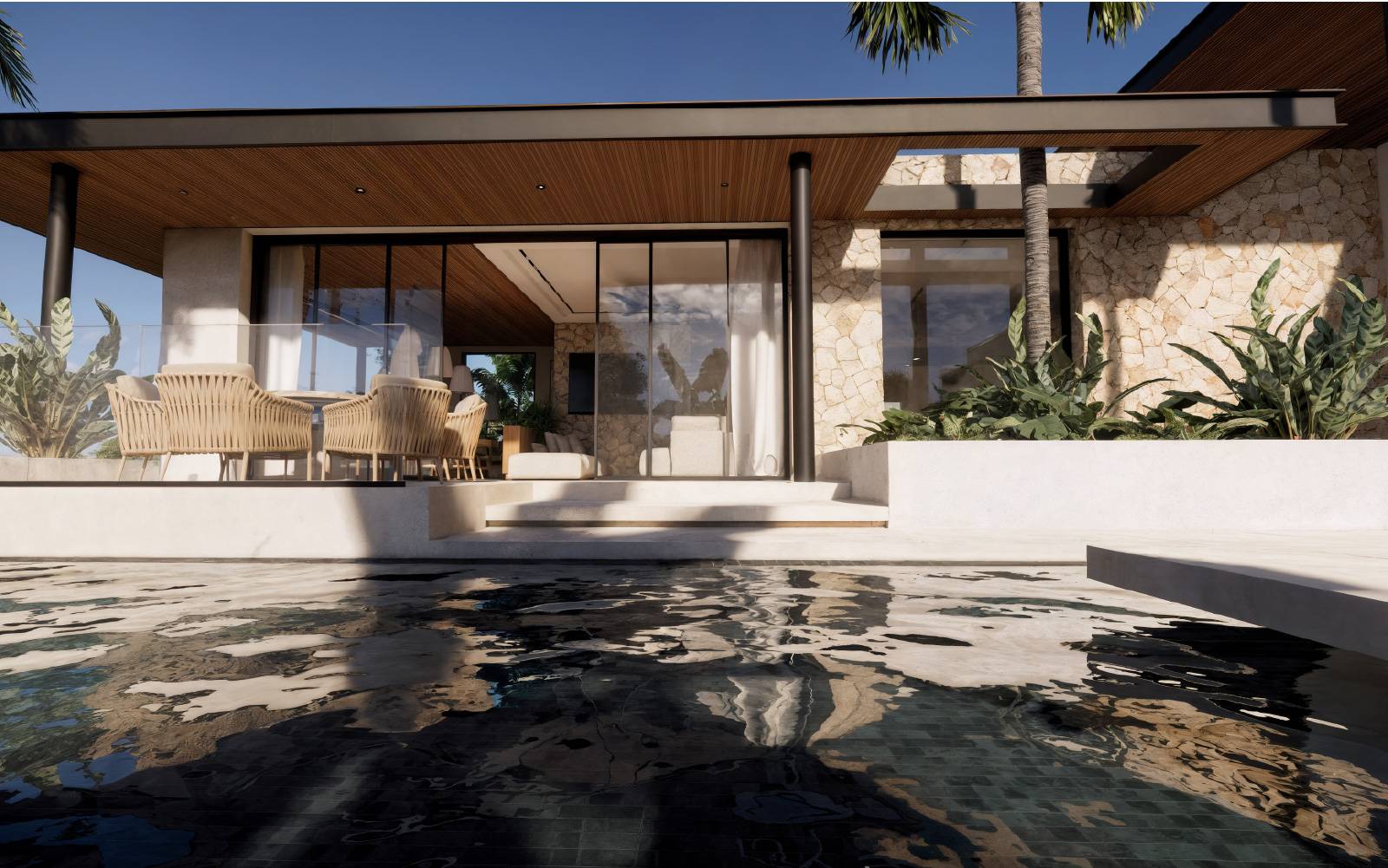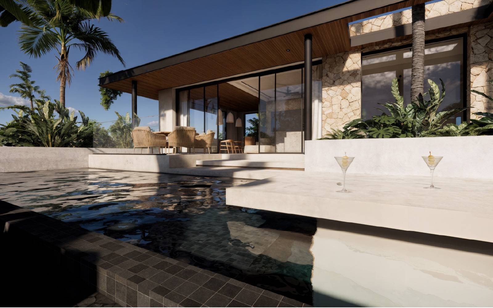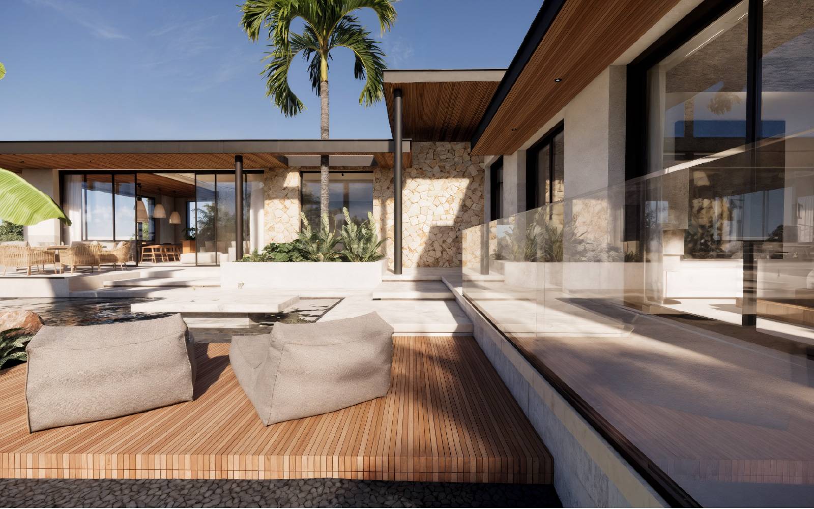 Pour façonner cette villa contemporaine, nous avons travaillé en co-conception avec Mathilde, du cabinet ML Architects, une collaboration que nous menons depuis plusieurs années. Ensemble, nous avons dessiné une maison exclusive sur plusieurs niveaux constituée de magnifiques volumes sculpturaux et de plusieurs terrasses imbriquées tout autour d’une immense piscine à débordement.